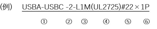 | USBA-USBC -2-L1M(UL2725)#22×1P | USB | 2 | 電源端子のみ | |