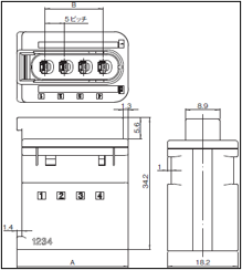 ①:FWB01(分岐・中継タイプ)により、2分岐が可能 ②:結束バンドを使用して固定がしやすい形状 ③:ケル独自の雌雄同型端子(3点接触で高信頼設計)