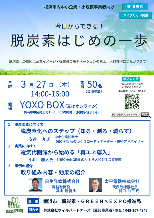 横浜市主催の脱炭素セミナー「今日からできる!脱炭素はじめの一歩」にて、