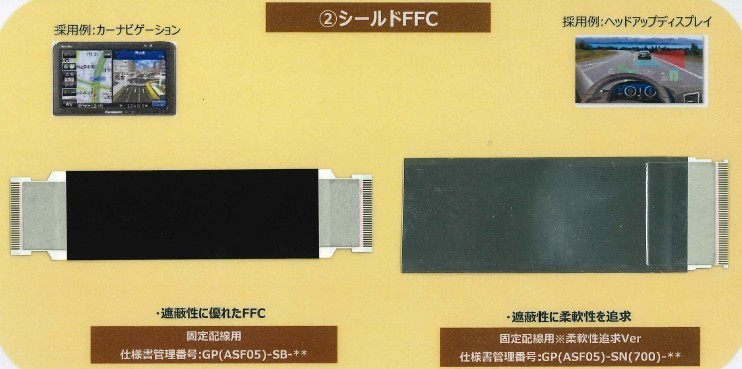FFCは屈曲に強いため、可動部の接続に適しています。また、ナイロンコネクタに比べコネクタの重量と電線の重量が軽く装置の軽量化に貢献いたします。振動に強いタイプ、操作性に優れたタイプ、高温に対応するタイプ、車載タイプ、ロボットによる嵌合に適したタイプ、高速信号が流せるタイプなどが用意されています。