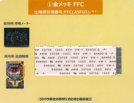 FFCはフレキシブルフラットケーブルの略です。内部配線で、薄く這わせるように配線が可能です。内部配線で通常使うナイロンコネクタは、基板側のコネクタと電線側コネクタの2ピースですが、FFCの接続は基板側コネクタのみの1ピースでコストダウンが可能です。また、ナイロンコネクタは、電線側で端子の圧着とハウジングへの挿入という生産工程がありますが、FFCはないため低価格となります。FFC接続は、ナイロンコネクタのハーネスのように自由な配置ができませんが、FFCを折ることによって方向を変え調整が可能です。(フォーミング加工と呼び加工済みで提供可能)