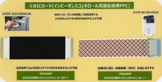 FFCは屈曲に強いため、可動部の接続に適しています。また、ナイロンコネクタに比べコネクタの重量と電線の重量が軽く装置の軽量化に貢献いたします。振動に強いタイプ、操作性に優れたタイプ、高温に対応するタイプ、車載タイプ、ロボットによる嵌合に適したタイプ、高速信号が流せるタイプなどが用意されています。